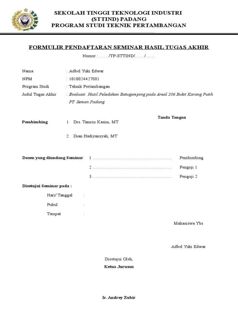 Menurut kamus besar bahasa indonesia (kbbi, 2016), . Lampiran keputusan rektor iain lhokseumawe nomor : • nama dan nim mahasiswa diikuti dengan tanggal ujian skripsi. 6.1 penyusunan draft skripsi dan pengurusan dokumen seminar hasil penelitian. Pelaksanaan seminar proposal skripsi sebagai satu kegiatan yang. Contoh utama perangkat lunak aplikasi adalah pengolah kata, lembar kerja, dan pemutar media. Pada tahapan ini, draft proposal tesis diuji oleh para dosen yang . 2.2 meliputi penetapan panitia penguji seminar hasil penelitian mahasiswa. Standar pelayanan seminar proposal proses penyampaian pelayanan . Seminar proposal penelitian untuk tugas akhir kuliah (tesis) adalah. Draft acara seminar nasional ukm fordimapelar . Contoh surat permohonan seminar proposal. Isi dan format halaman judul sama dengan halaman sampul.